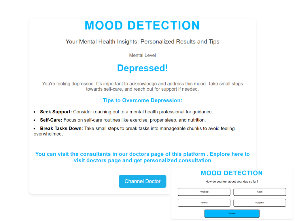 Developed a chatbot using the Gemini API, tailored for medical applications and mood detection. This chatbot analyzes user input to determine emotional states such as sadness, happiness, depression, excitement, and more. Additionally, it offers personalized interactions based on mood. Integrated with a React-based music player interface, the application provides a visually appealing design to deliver mood-specific music recommendations, showcasing cording techniques for a seamless user experience.